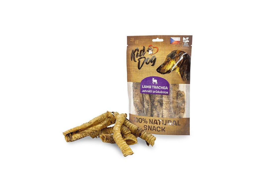 KIDDOG 100% Natural Snack, jehněčí průdušnice (hrtan) 10 - 12 cm / 100 g