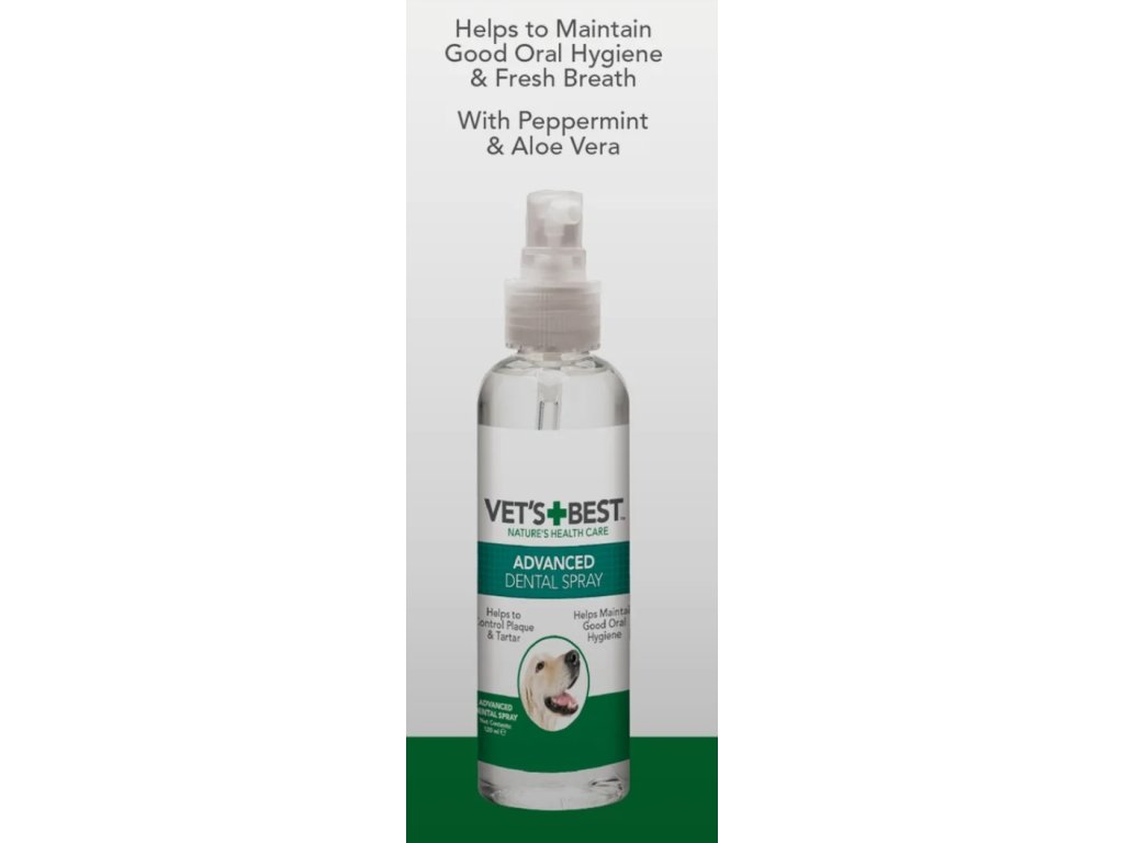 Vet’s Best dentální sprej spolu s lanovým uzlem účinně pomáhají eliminovat bakterie v dutině ústní a přispívají k prevenci tvorby zubního plaku a zubního kamene.